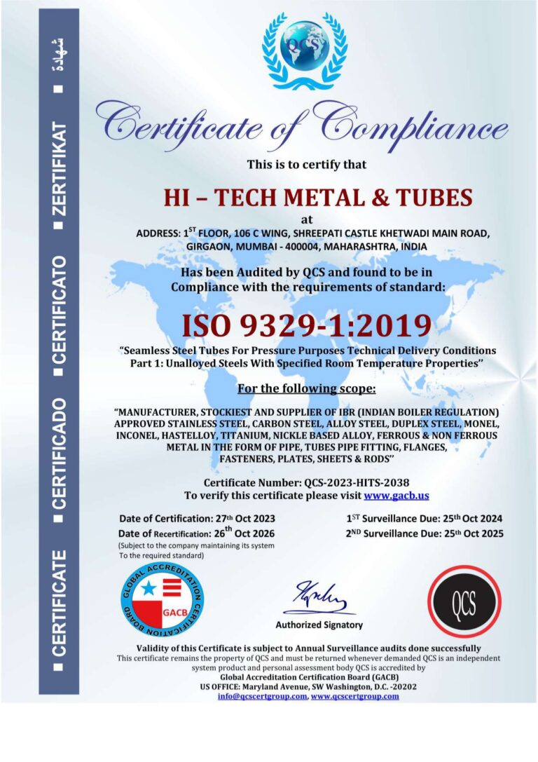 At Steel Pipe & Tubes, we are committed to maintaining the highest quality standards across our product range. Through our partnership with Hi Tech Metal & Tubes, we ensure that customers receive certified, reliable, and industry-compliant steel pipes and tubes for critical applications worldwide.